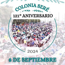 Colonia Seré se prepara para festejar su 121° Aniversario y lo hace con el siguiente cronograma de actividades, el domingo 8 de septiembre 05:00HS Encendido de fogones 10:00hs Acto Protocolar Desfile de Instituciones – tradicionalistas – carruajes 12:00hs Agrupación “A Don Ata” 13:00hs Almuerzo Popular 14:00hs Tayul 14:45hs Peña “Dejando Huellas” 15:30hs Gladys Florimonte y Marcelo Joset 16:15hs L...