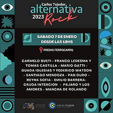 Este fin de semana, Carlos Tejedor celebra el 118° Aniversario con una gran fiesta. En el marco de los Fiesta Aniversario, el sábado 7 se realizará "Alternativa Rock" que contará con la actuación principal de La Mancha de Rolando, entre otros artistas invitados. El evento se realizará en el Predio del Ferrocarril, desde las 19 horas Grilla de artistas - Carmelo Bueti