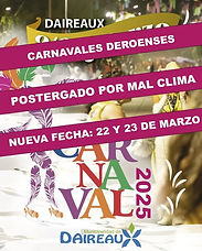 La Comisión de apoyo a los Carnavales deroenses junto al ejecutivo municipal decidieron postergar el festejo de carnaval debido al pronóstico de mal tiempo. La fecha elegida es el 22 y 23 de marzo y hasta el momento la grilla de artistas no tendría modificaciones....