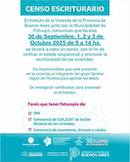 La Municipalidad de Pehuajó informa que durante los días 30/09 - 01/10 - 02/10 y 03/10, en el horario de 9 a 14 horas se realiará un Censo Escriturario por los barrios de la ciudad Es imprescindible que esté presente en la vivienda un integrante del grupo familiar mayor de 18 años para aportar los datos. 🏠Serán censadas viviendas de los siguientes lugares👇: 📍Barrio Mugica 📍Barrio 8 de Marzo ...