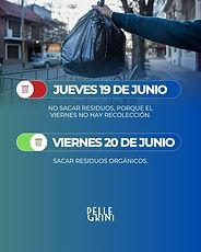 El Municipio de Pellegrini informa sobre los Cambios en la recolección de residuos - Jueves 19 de junio: No saques residuos, ya que el viernes no habrá recolección. - Viernes 20 de junio: Podés sacar residuos orgánicos. Se solicita la colaboración de los vecinos para mantener limpia la ciudad y evitar acumulación en la vía pública....