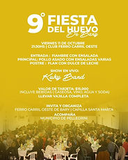 El Viernes 11 de octubre llega a De Bary la novena edición de la Fiesta Del Huevo. Desde las 21.30 horas en el Club Ferro Carril Oeste, la tradicional fiesta regional contará con entrada de fiambre con ensalada, plato principal con pollo y ensaladas y postre flan con dulce de leche. El evento contará con la actuación de la Kuky Band. Valor de la tarjeta $15.000...