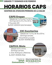 Te compartimos los lugares y horarios de atención de los centros de salud durante el fin de semana en América. 📍 CAPS Groppo 📆 Sábado de 7 a 13 hs. y 17 a 19 hs. 📆 Domingo de 8 a 12 hs. y de 18 a 20 hs. 📍 CIC Zuccherino 📆 Sábado de 7 a 13 hs. y de 18 a 20 hs. 📆 Domingo cerrado 📍 CAPS H. Nieto 📆 Sábado de 6 a 14 hs. 📆 Domingo cerrado...