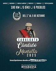 Del 1° al 5 de octubre, vuelve a galopar por los caminos distrito de Rivadavia la tradicional Cabalgata Cándido Mansilla, un evento que ya es símbolo de identidad rivadaviense. Ya está abierta la inscripción para todos los vecinos que deseen ser parte de esta experiencia única: 180 km en 5 días, atravesando 6 localidades y rindiendo homenaje a nuestras raíces y tradiciones. 📍 Planillas de inscrip...