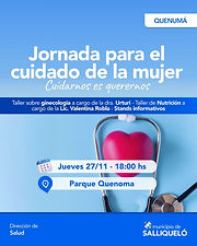 ESTE JUEVES SE REALIZARÁ EN QUENUMÁ UNA JORNADA PARA EL CUIDADO DE LA MUJER