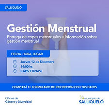 Desde la Oficina de Género y Diversidad del municipio de Salliqueló, se invita a la entrega de copas menstruales y a participar de una charla informativa sobre gestión menstrual. La misma se realizará este Jueves 12 de diciembre a las 14 hroas en el CAPS FONAVI Completá el formulario de inscripción disponible en la descripción de @ofigenerodiversidad o en el siguiente enlace: https://docs.google.c...