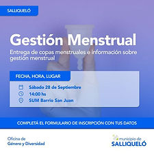 Desde la Oficina de Género y Diversidad del municipio de Salliqueló, se invita a la entrega de copas menstruales y a participar de una charla informativa sobre gestión menstrual. La misma se realizará este Sábado 28 de septiembre a las 14:00 hs en el SUM Barrio San Juan Para participar, completá el formulario de inscripción con tus datos: https://docs.google.com/.../1GUCmrRk9LjtXYmGdNn3Eg8.../edi...