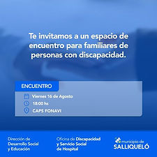 SALLIQUELÓ: ESTE VIENRES HABRÁ UN ESPACIO DE APOYO PARA FAMILIAS DE PERSONAS CON DISCAPACIDAD
