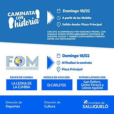 Este domingo 18 de febrero, desde las 18.30 horas se realizará en Salliqueló la primera "Caminata con Historia", organizada por la Dirección de Deporte, la Dirección de Cultura y "Festivales de Música, Flor de Médanos". Esta actividad articulada invita a explorar la ciudad mientras se descubren sus rincones llenos de historia y disfrutes de los beneficios que una caminata le brinda a la salud. El...