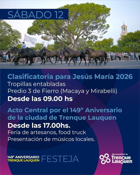 149º ANIVERSARIO DE TRENQUE LAUQUEN : EL ACTO CENTRAL SERÁ EL SÁBADO 12 DE ABRIL Y PARA EL DOMINGO 13 SE ORGANIZA EL TRADICIONAL DESFILE Y UN CIERRE MUSICAL