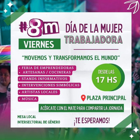 Este viernes 8 de marzo, a partir de las 17 horas, los esperamos en nuestra Plaza Principal para una jornada dedicada al encuentro, el debate y el intercambio.