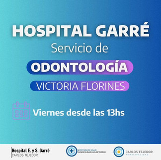 Desde el mes de septiembre en servicio de odontología se incorporan dres. MARCOS GARRIDO, quien atenderá los lunes desde las 13hs y los miércoles desde las 16hs; y la Dra. VICTORIA FLORINES que atenderá los días Viernes desde las 13hs