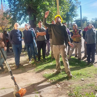 En la mañana de hoy (martes) se completó la capacitación para personas que desarrollan tareas de poda y forestación en todo el distrito, con una parte práctica que se desarrolló en calles aledañas al Barrio Parque de la ciudad, y en el galpón de Espacios Verdes, donde se trabajó en el mantenimiento del equipamiento que se utiliza para desarrollar este tipo de tareas.