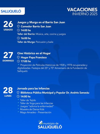 CRONOGRAMA DE ACTIVIDADES DURANTE LAS VACACIONES DE INVIERNO 2025 EN SALLIQUELÓ Y QUENUMÁ
