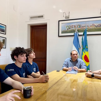 Del encuentro participaron el subsecretario de Producción y Desarrollo Económico del municipio, Germán Lauro; la encargada del Polo Científico Tecnológico, Brenda Cantero y los integrantes del equipo de Robótica: Juan Pablo Rivelli, Franco Morales, Valentino Gómez Muñoz y Luciano Hernández.