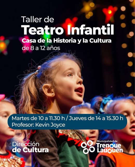 Como parte de las actividades y cursos que impulsa la Dirección de Cultura municipal, está abierta la inscripción al Taller de Teatro Infantil, una propuesta destinada a niños de entre 8 y 12 años.
