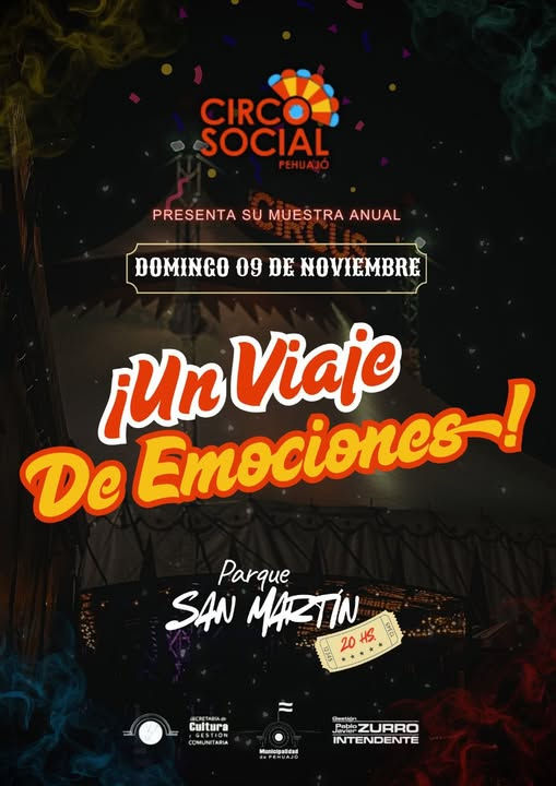 Este domingo 9 de noviembre, te invitamos a vivir una noche magica donde los chicos y chicas del Circo Social Pehuajó nos llevarán por un recorrido lleno de risas, ternura, adrenalina y mucha emoción