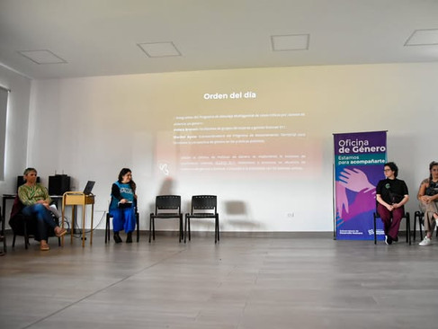 De la reunión participaron Lucía Hernaiz, coordinadora general del Programa de Asesoramiento Territorial para fortalecer la perspectiva de género en las prácticas policiales; Violeta Braconi, facilitadora de grupos de mujeres y gestión de botones 911 y Maribel Ayala, subcoordinadora del Programa de Asesoramiento Territorial para fortalecer la perspectiva de género en las prácticas policiales.