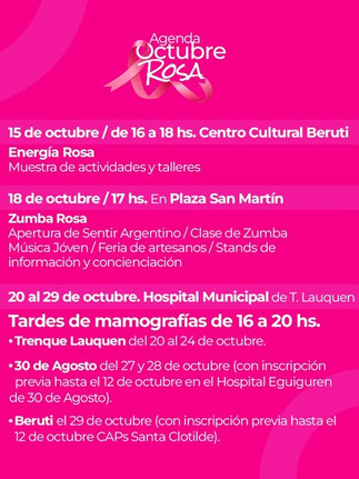OCTUBRE ROSA EN TRENQUE LAUQUEN: UN MES COMPLETO DE ACTIVIDADES PARA PROMOVER LA CONCIENTIZACIÓN Y DETECCIÓN PRECOZ DEL CÁNCER DE MAMA