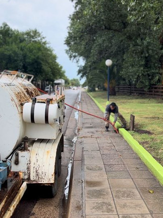 Como parte del mantenimiento continuo que se está realizando en el sistema de desagüe de la ciudad de Pellegrini, y utilizando desaturadores, personal municipal avanza en las tareas de limpieza en las bocas de tormenta.