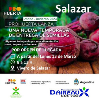 PRO HUERTA: ENTREGA DE SEMILLAS OTOÑO - INVIERNO EN DAIREAUX, SALAZAR Y ARBOLEDAS