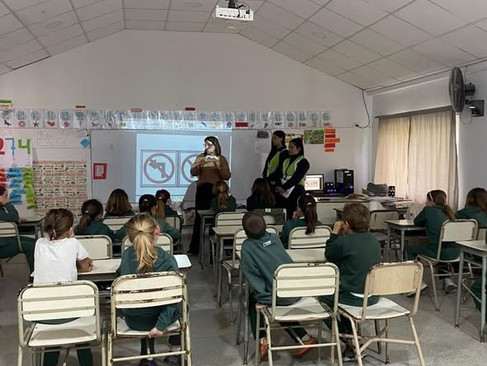 Personal del área de Protección Ciudadana de la Municipalidad de Trenque Lauquen, a cargo de María Córdoba, brindó una charla de educación vial a alumnos y docentes que asisten a egundo grado del Colegio Los Médanos, con el objetivo de concientizar y capacitar en materia de tránsito y circulación en la vía pública desde edades tempranas.