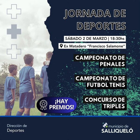 Este Sábado 2 de marzo, Salliquelo se llenara de puro deporte, música y danza de la mano de dos eventos que se llevarán a cabo en el Ex Matadero "Francisco Salamone" (Paseo del Lago).