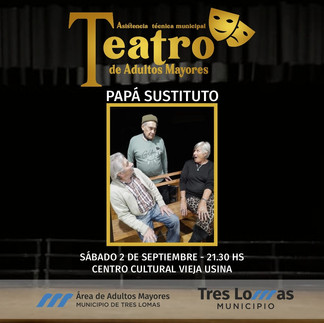 El Area de Adultos Mayores de la Municipalidad de Tres Lomas, invita a la jornada de Teatro que tendrá lugar el próximo Sábado 2 de Septiembre, desde las 21.30 hs, en el Centro Cultural "Vieja Usina", con la presentación de cinco obras.